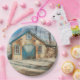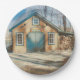 Estos platos de papel tienen una casa de azúcar de arce en la granja Parmelee en Killingworth, Connecticut. Estas placas muestran una vista un poco más amplia que las demás vistas que se enumeran.