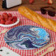 Aceite de mármol azul oscuro, azul claro y blanco en el arte de pintar.