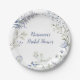 Una variedad de flores silvestres y vegetación en tonos azules de acuarela hacen el fondo para este plato de papel para despedida de soltera. Una adición perfecta a la mesa para una despedida de soltera con tema de flores silvestres o boho, de pareja, o boda, pero puedes personalizarlo para una fiesta de compromiso, celebración de aniversario, baby shower, o fiesta de cumpleaños. Disponible con productos coincidentes.
