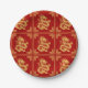 Plato De Papel Marco de Ornamento Griego Patrón Dragón Oro Rojo