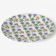 Mardi Gras party supplies fleur de lis paper plates purple, gold, green on white.