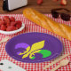 Plato De Papel Mardi Gras Green Yellow Purple Fleur-de-Lis