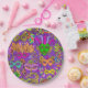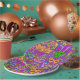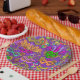Estas coloridas placas de Mardi Gras serán el complemento perfecto para su fiesta del Mardi Gras. Este diseño presenta máscaras de máscaras en una variedad de patrones y un desfile de colores en verde, azul, rosa, púrpura y dorado sobre un fondo morado. Diseñado por el artista de renombre mundial © Tim Coffey.