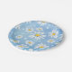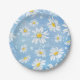 Una placa de papel preciosa con las margaritas blancas en un fondo azul de la mirada de la acuarela. Placa también disponible con el centro blanco.