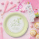 Agrega un toque festivo a tu fiesta de despedida de soltera con platos personalizados con el tema "Margs y Matrimonio". Con tipografía elegante de letra manuscrita y una encantadora margarita de acuarela adornada con un lazo en el tallo, estos platos capturan perfectamente la vibra de la celebración. Texto en verde lima con un borde verde amarillento pálido. Personaliza con el título de tu evento y fecha para hacer tu día especial aún más inolvidable. © Kimbellished, LLC
