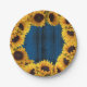Plato De Papel Marina Rustic Sunflowers Madera de granero azul