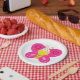 Una hermosa mariposa rosa y amarilla. Este diseño parece realmente efectivo en estas placas de papel