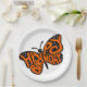 Plato De Papel Mariposa monarca negra y Naranja Feliz cumpleaños
