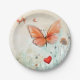 Este diseño de placas de papel ofrece un aspecto de cuento de hadas con una gran mariposa rosa y un corazón rojo lindo. Tiene colores suaves y flores de primavera. Este diseño es genial para la fiesta de cumpleaños de tu hija.