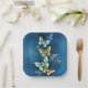 Composición de vuelo, joyería, oro y mariposas oscuras sobre fondo de joyería texturada. Mariposa dorada.