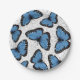 Diseño de patrones impecable con mariposas morfo azules sobre el fondo de la línea de flores hidrangea.
