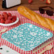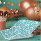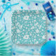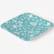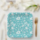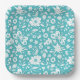 Patrón floral blanco con mariposas sobre un fondo turquesa.