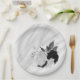 flores negras y blancas con algunas hojas grises sobre un fondo de papel de fondo de mármol gris plateado