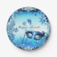 Platos de fiesta elegantes de máscara de disfraz de invierno azul y copos de nieve. Personalice con cualquier texto. Los artículos coincidentes están disponibles.