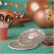 Burlap de encaje, peonías y platos de papel de boda rústico de almendras de ensueño de bebé