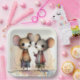 Dos ratones adorables uno al lado del otro, vestidos con un conjunto encantador y colorido con grandes ojos expresivos