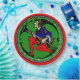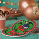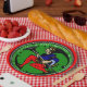 No hay mejor manera de fijar tu mesa de vacaciones o servir galletas de Navidades (o regalarlas) que en la variación original de HoMeArt de un elfo Maxfield Parrish antes de la Primera Guerra Mundial con leggings de puntos de polka blanco y negro + el saludo "Feliz Navidad" en un fondo kelly verde.