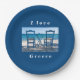 Plato De Papel Me encanta la taberna griega foto azul y blanco