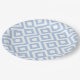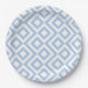 Este elegante diseño geométrico blanco y azul claro es un diseño ornamental original. Los meandros blancos de los meandros alrededor de los diamantes azul pálido que contienen diamantes blancos. Los zigzags azules para bebés proporcionan una sutil separación entre los senderos sinuosos.