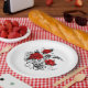 Plato De Papel Media luna mecánica con rosas rojas
