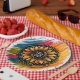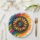 Las mejores placas de fiesta de mamá con un texto de la mejor madre vibrante en el medio rodeado de arte de girasol colorido