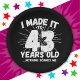 Este divertido diseño de cumpleaños 43 hace un gran chiste de humor sarcástico o regalo de novedad para un tema de cumpleaños de 43 años o una fiesta sorpresa de cumpleaños de 43. Funcionalidades como "Lo hice a los 43 años... nada me asusta", un gracioso meme de 43 años que tendrá muchas risas de la familia, amigos, invitados fiestas y el hombre o chica de cumpleaños también.