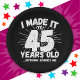 Este divertido diseño de cumpleaños 45 hace un gran chiste de humor sarcástico o regalo de novedad para un tema de cumpleaños de 45 años o una fiesta sorpresa de cumpleaños número 45. Funcionalidades como "Lo hice a los 45 años... nada me asusta", meme gracioso de 45 años que tendrá muchas risas de la familia, amigos, invitados fiestas y el hombre o chica de cumpleaños también.