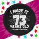 Este divertido diseño de cumpleaños número 73 hace un gran chiste de humor sarcástico o regalo de novedad para un tema de cumpleaños de 73 años o una fiesta sorpresa de cumpleaños número 73. Funcionalidades como "Lo hice a los 73 años... nada me asusta", un gracioso meme de cumpleaños de 73 años que tendrá muchas risas de la familia, amigos, invitados fiestas y el hombre o chica de cumpleaños también!