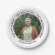 Platos de papel conmemorativos personalizados con una foto de tu ser querido y su nombre y años de vida. Escrito en el marco negro de la foto: te extrañan, te aman, te recuerdan. Plato de papel funerario del almuerzo en blanco personalizado con una foto de tu ser querido.