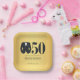 Celebrate a milestone in timeless style with this elegant 50th birthday plates. Featuring a luxurious gold background and a bold black tuxedo graphic, the design pairs classic sophistication with modern simplicity. The striking “50” detail sets the tone for a refined evening, while party information is displayed in a graceful serif font for a polished finish. Perfect for a formal birthday celebration, black-tie event, or upscale soirée.