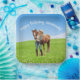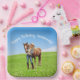 Horse Girl Horseback Riding Meadow Diseño personalizado con espacio para mensajes cortos como "Feliz cumpleaños jade" o "Felicitación Savannah". Reflexiona sobre el vínculo único entre un caballo y un jinete. Perfecto para cualquiera que ame los caballos.