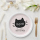 Plato De Papel Meow Black Cat Face Chica rosa Baby Shower