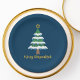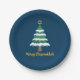 Este lindo plato de papel fiesta de Merry Chrismukkah presenta un árbol de Navidad verde decorado con adornos de dreidel azul y una estrella judía de David dorada en la parte superior para Hanukkah para combinar las dos vacaciones para una familia que celebra ambos.