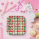 Cute Moderno Rojo verde y Blanco Gingham comprobar tartán Jugar con Feliz Texto de Navidad y Decoraciones navideñas de árboles, campana y copos de nieve diseño de patrones sin fisuras