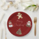 Cute watercolor vintage gingerbread man cookie, Santa, Snowman, Christmas tree design pattern were used to create this cute as ever paper plate for your holiday table. Merry Christmas sentiment in the center in a lovely font.