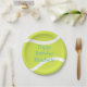 Estos divertidos platos de papel de fiesta de tenis incluyen un sencillo gráfico de pelota de tenis en el que se puede personalizar el texto en cualquier color personalizado - por katz_d_zynes