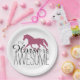 ¿Amas tu caballo o pony y crees que son lo mejor en cuatro patas? Si es así, este diseño de temática equina es sólo para usted! Presenta un caballo trotando con un texto que dice "¡Mi caballo es impresionante!" Un gran regalo para dar a cualquiera que ame los caballos o ponis y pasea en bote de cazadores, vestidos, o incluso simplemente va a la pista para la diversión!