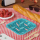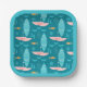 Plato De Papel Mid Century Pink Catamaran - Blue Background