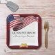 This design features beautiful fully customizable text, beautiful deep burgundy background and flag adorning the top, along with a golden eagle crest at the bottom, which can be fully customizable for text as well.