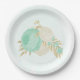 Plato De Papel Minería romántica flores verdes y blancas de oro