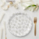 A delicate seamless floral pattern paper plate featuring elegant line art illustrations of wildflowers, leafy stems, and tiny berry branches on a clean white background. This minimalist botanical design uses soft neutral tones and fine outlines to create a calm, modern aesthetic.