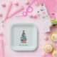 Plato De Papel Minimalist Merry Christmas Snowy Tree