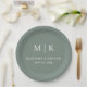 Estas elegantes y modernas placas de papel de boda o de ducha de novia presentan un sencillo diseño de texto en blanco y negro que rebosa de estilo minimalista. Añada sus iniciales o su monograma para hacerlas completamente propias.