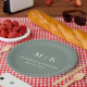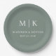Estas elegantes y modernas placas de papel de boda o de ducha de matrimonio presentan un sencillo diseño de texto en blanco y verde que rebosa de estilo minimalista. Añada sus iniciales o su monograma para hacerlas completamente propias.