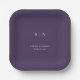 Estos elegantes y modernos platos de papel de boda o de ducha de matrimonio presentan un sencillo diseño de texto morado oscuro y blanco que rebosa de estilo minimalista. Añada sus iniciales o su monograma para hacerlas completamente propias.
