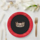 Estos platos de papel festivo de concurso son geniales para servir algo divertido (y una limpieza fácil también) para su próximo concurso. Agregue el tema del concurso o el nombre del concurso si lo desea. Aquí se muestra un luminoso borde rojo y una brillante corona dorada impresa en el centro sobre el fondo negro de la moda. Tonos dorados en el borde. Personalice o compre según lo diseñado. ¡Vean también los platos de 7"!