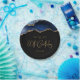 Estos glamorosos platos de papel para fiestas de cumpleaños número 80 de moda presentan una imagen acuarela de un ágate geodésico en tonos azules con falsos purpurinas de oro resaltados. Las palabras "Cumpleaños 80" aparecen en un falso purpurina de oro en un estilo de letra decorativo moderno. Personalizar con el nombre del honorario y la fecha en texto de color oro.