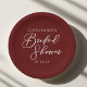 Este elegante plato de papel de ducha de novia color burdeos presenta un sencillo guión blanco para una novia en un lugar de celebración de la noche. Abran el romance con este rico y audaz color. decoración de tipografía minimalista y romántica.