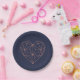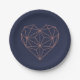 Placas de papel de corazón geométrico de Relieve metalizado dorado azul y azul de moda y Rosa con un diseño de corazón de polígono a la moda en azul marino.