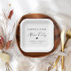 Platos de papel de moda para la recepción de tu boda y otras celebraciones post-bodas que incluyen "Feliz eterno después del Fiesta" en una tipografía simple y un guión moderno y elegante, un corazón y tus nombres y fecha de recepción.
